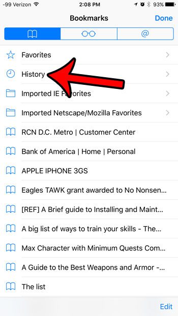 第 3 步:選擇歷史靠近此列表頂部的選項。