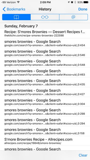 - 在此屏幕上查看您的歷史記錄。它是按時間順序排序的。您可以點擊此列表中的任何項目來訪問該頁面。