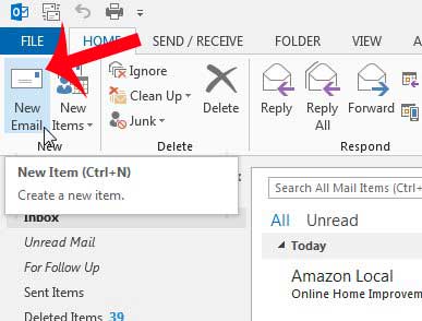 第 2 步:單擊新電子郵件導航功能區左上角的按鈕可創建新消息。