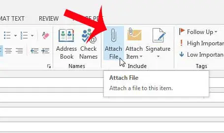 第 4 步:單擊附加文件按鈕在包括導航功能區的部分。