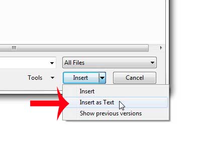 第五步:點擊右側的箭頭插入按鈕,然後單擊作為文本插入按鈕。