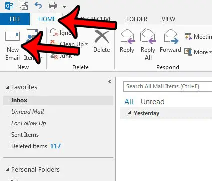 第 2 步:單擊家窗口頂部的選項卡,然後單擊新電子郵件功能區左端的按鈕。
