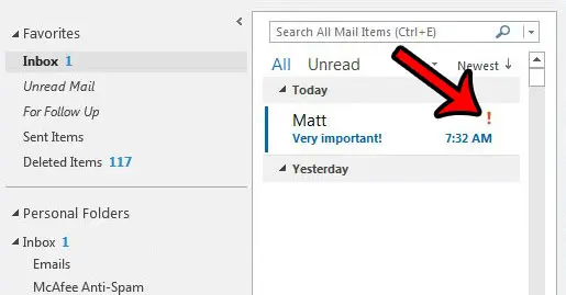 如果您在 Outlook 收件箱中看到一封郵件旁邊有一個紅色感嘆號,則發件人已將該郵件標記為高度重要。