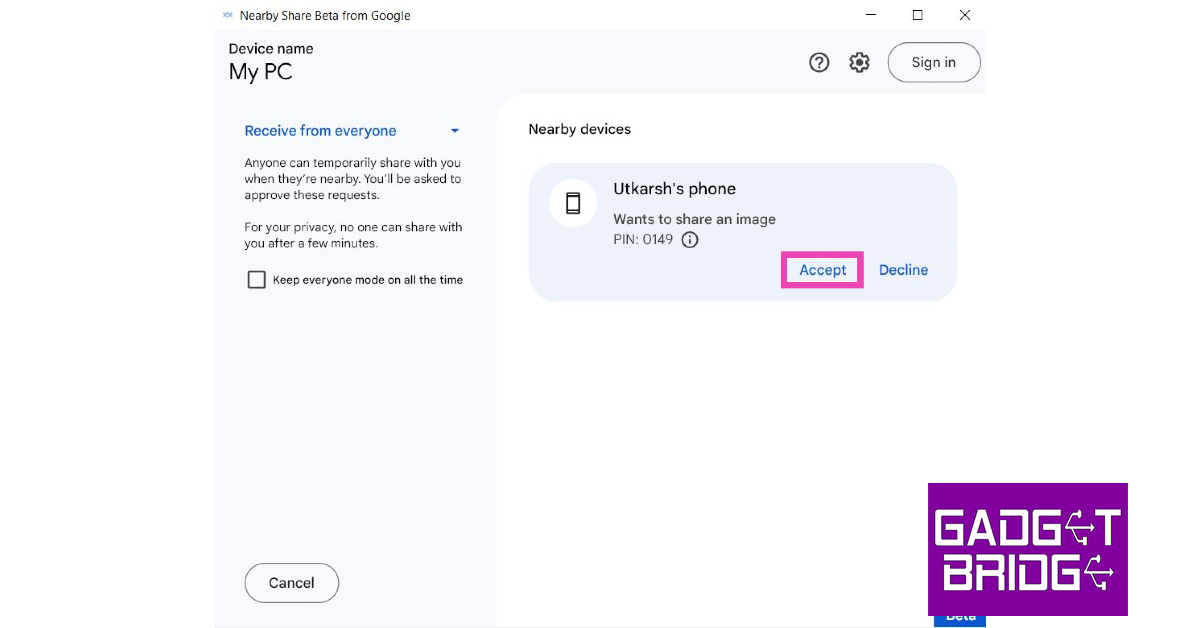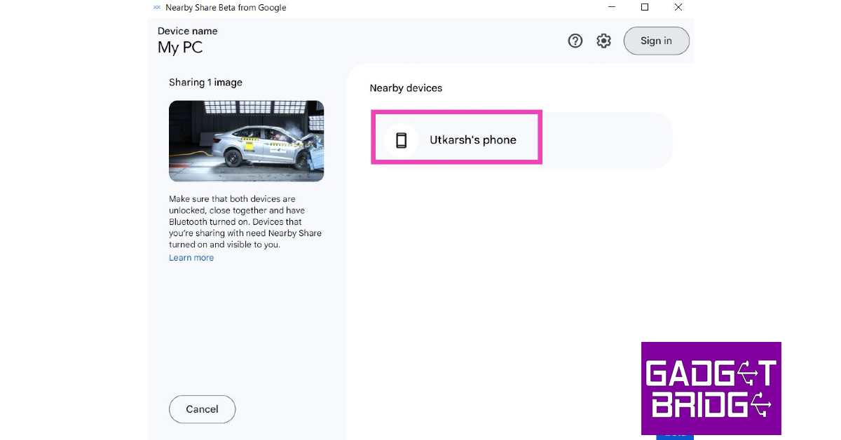 在PC上安裝附近共享應用的Beta版本,然後拖放文件與您的Android手機共享。您還可以通過從共享選項中選擇“附近共享”來共享Android手機的文件。