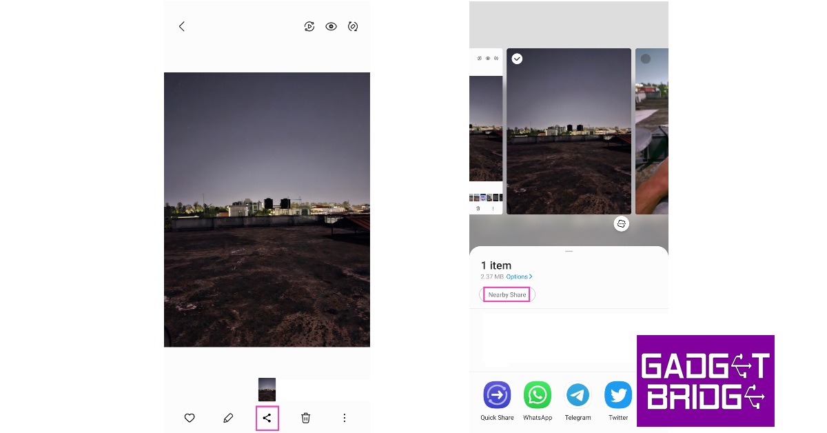 步驟7:點擊共享圖標,然後從選項列表中選擇“附近共享”。