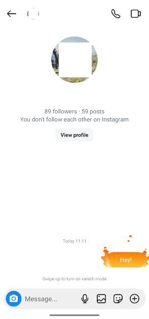可以通過從聊天底部向上滑動來啟用消失模式。一旦聊天設置為消失模式,這些消息就會變得短暫。這意味著一旦有人離開頁面或禁用該模式,您在聊天中發送的任何內容都會被刪除。