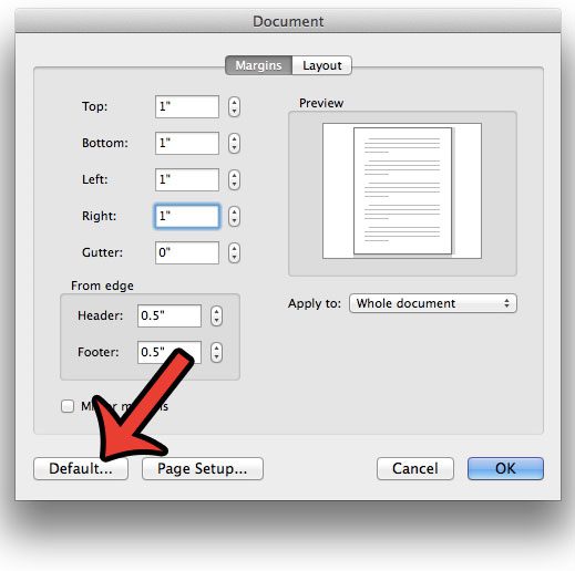 請注意,執行這些步驟只會將當前文檔的邊距更改為 1 英寸。如果您希望在 Word 2011 中將默認邊距更改為 1 英寸,則需要單擊格式>文檔,然後調整邊距並單擊預設按鈕位於窗口的左下角。