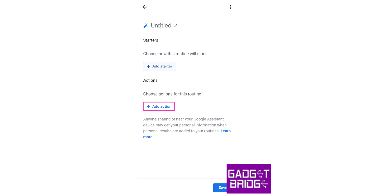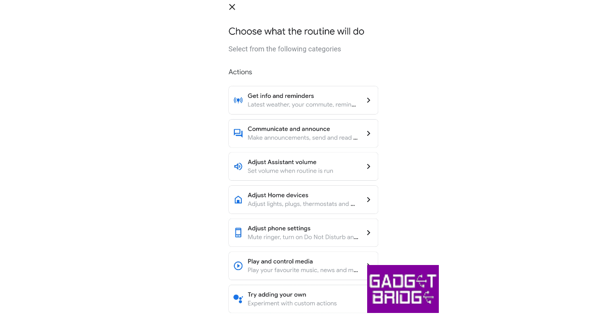 第9步:現在,選擇您想要在此例程中執行的動作。點擊“添加操作”即可設置 Google Assistant 要執行的任務或操作。