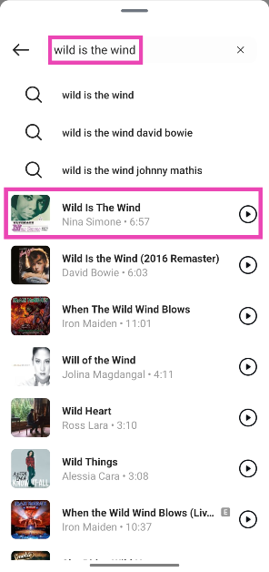 第6步:如果您在列表中找不到您喜歡的歌曲,請在列表中輸入其名稱搜索欄在屏幕頂部。