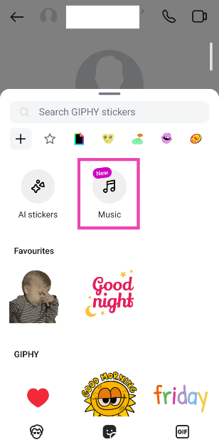 您可以通過 Instagram DM 向您的朋友發送音樂,方法是點擊聊天中的貼紙圖標,然後點擊音樂貼紙,然後選擇您喜歡的歌曲標題。