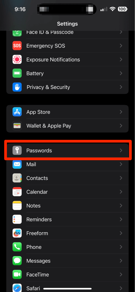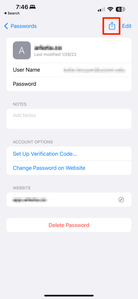 接下來,在您的 iPhone 上導航至設定,密碼,然後選擇您想要共享的密碼。單擊分享象徵。