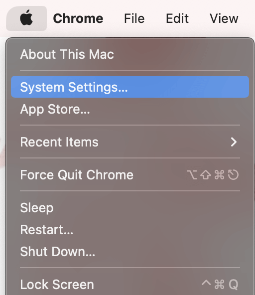 現在,在 Mac 上導航至蘋果菜單,然後選擇系統設置。