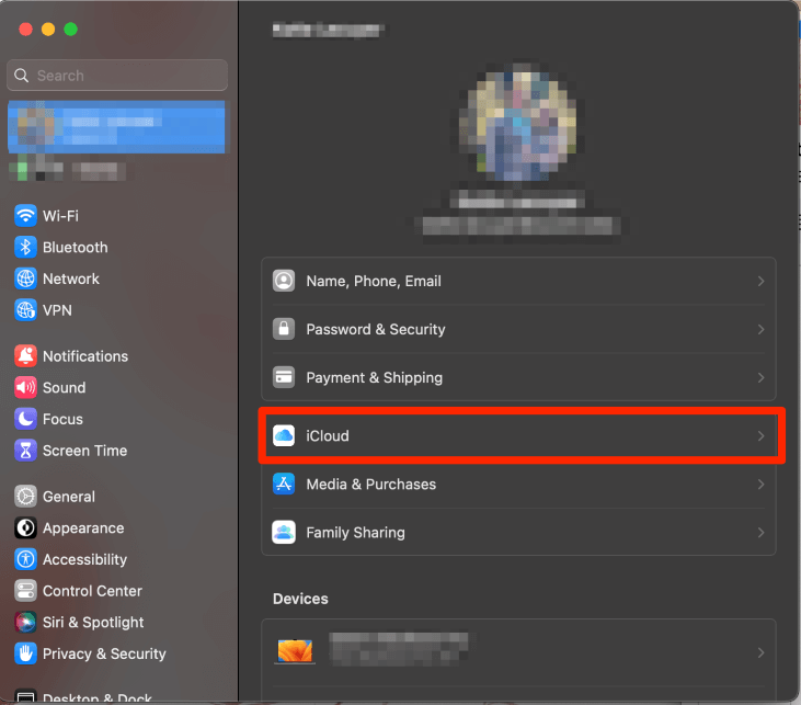 確保您登錄的 Apple ID 與您在 iPhone 上登錄的 Apple ID 相同,然後單擊您的蘋果ID和iCloud。