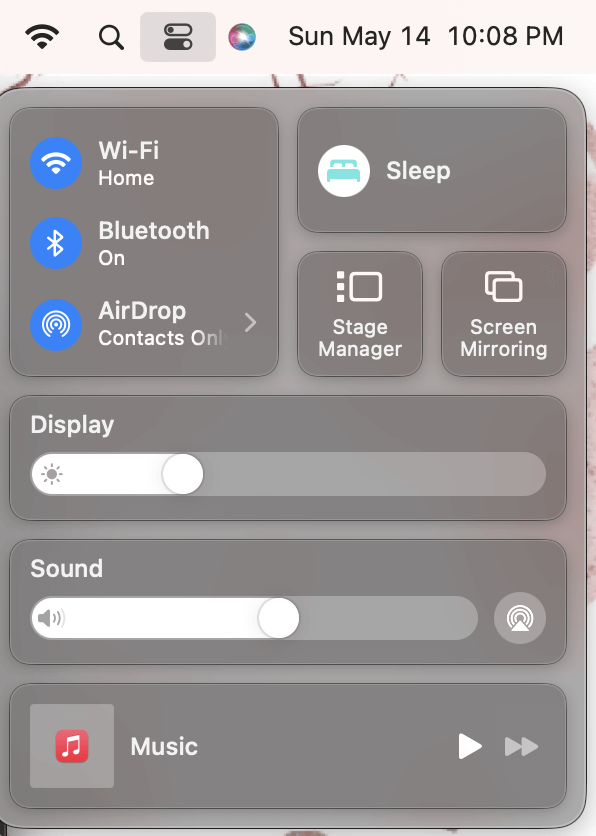 在 Mac 上,拉下控制面板並確保 AirDrop 已打開。與 iPhone 一樣,您只需要打開“通訊錄空投”即可。就我個人而言,我始終將空投保留在聯繫人中。