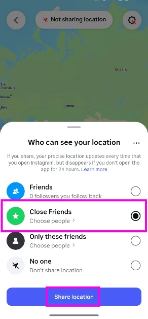 第4步:選擇誰可以看到您的位置:朋友們,親密的朋友,精選好友, 或者沒有人。
