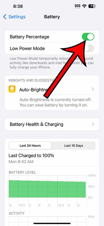 我們的指南在下面繼續提供有關 iPhone 14 電池百分比選項的更多信息,包括這些步驟的圖片。