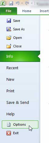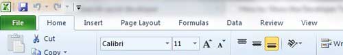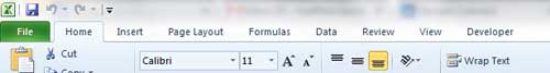 Microsoft Excel 2010 中的默認選項卡配置如下所示 –