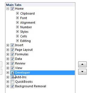 當選中“開發人員”複選框時,“Excel 開發人員”選項卡將在您的應用程序中可見。對於此處指示 Excel 功能區上其他選項卡的任何其他框也是如此。