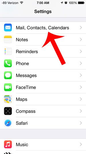 步驟 2:向下滾動並選擇郵件、通訊錄、日曆選項。