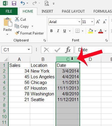 步驟 2:單擊電子表格頂部的列字母以選擇日期列。