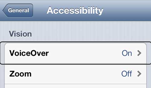 步驟 3:用三指滾動到菜單底部,點擊無障礙一次選擇它,然後雙擊打開菜單。