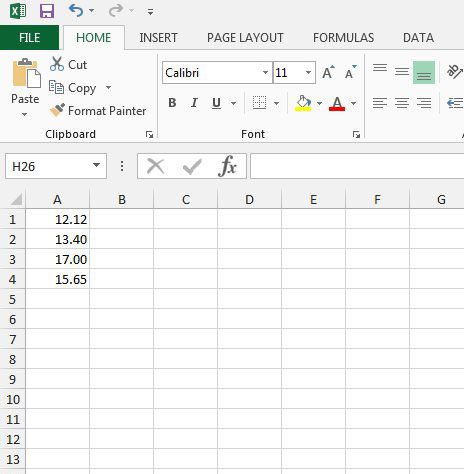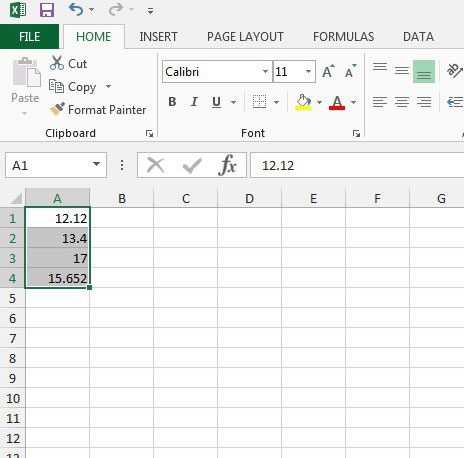 只有您在下面的過程中選擇的單元格才會顯示小數點後面的兩位數字。