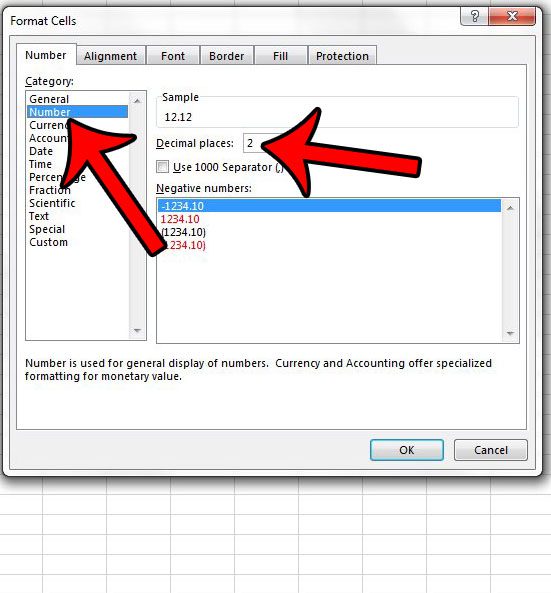 第 3 步:單擊數字下的選項類別,在右側字段中輸入“2”小數位,然後單擊好的按鈕位於窗口底部。