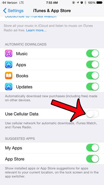 請注意,關閉以下選項還將阻止您的 iPhone 使用蜂窩數據進行 iTunes Match 和自動 iTunes 下載。