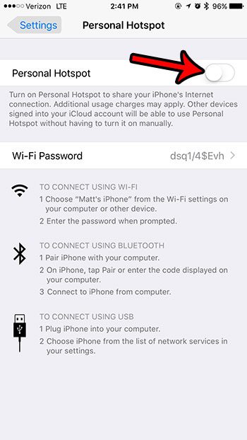我們的指南在下文中繼續提供有關如何停止在 iPhone 上共享熱點連接的更多信息,包括這些步驟的圖片。