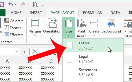 第 3 步:單擊尺寸按鈕在頁面設置導航功能區部分,然後單擊字母選項。