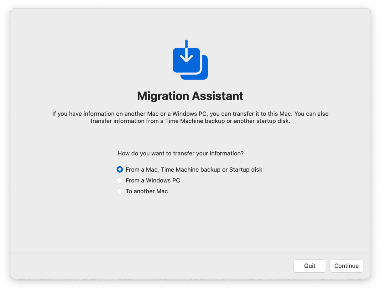 如果您需要將數據從一台 Mac 傳輸到另一台 Mac,遷移助手可能是最佳選擇。這款內置 macOS 應用程序專門設計用於將應用程序、文件、帳戶和設置從舊 Mac 遷移到新 Mac。在啟動應用程序並開始傳輸之前,請確保兩台 Mac 都已做好充分準備: