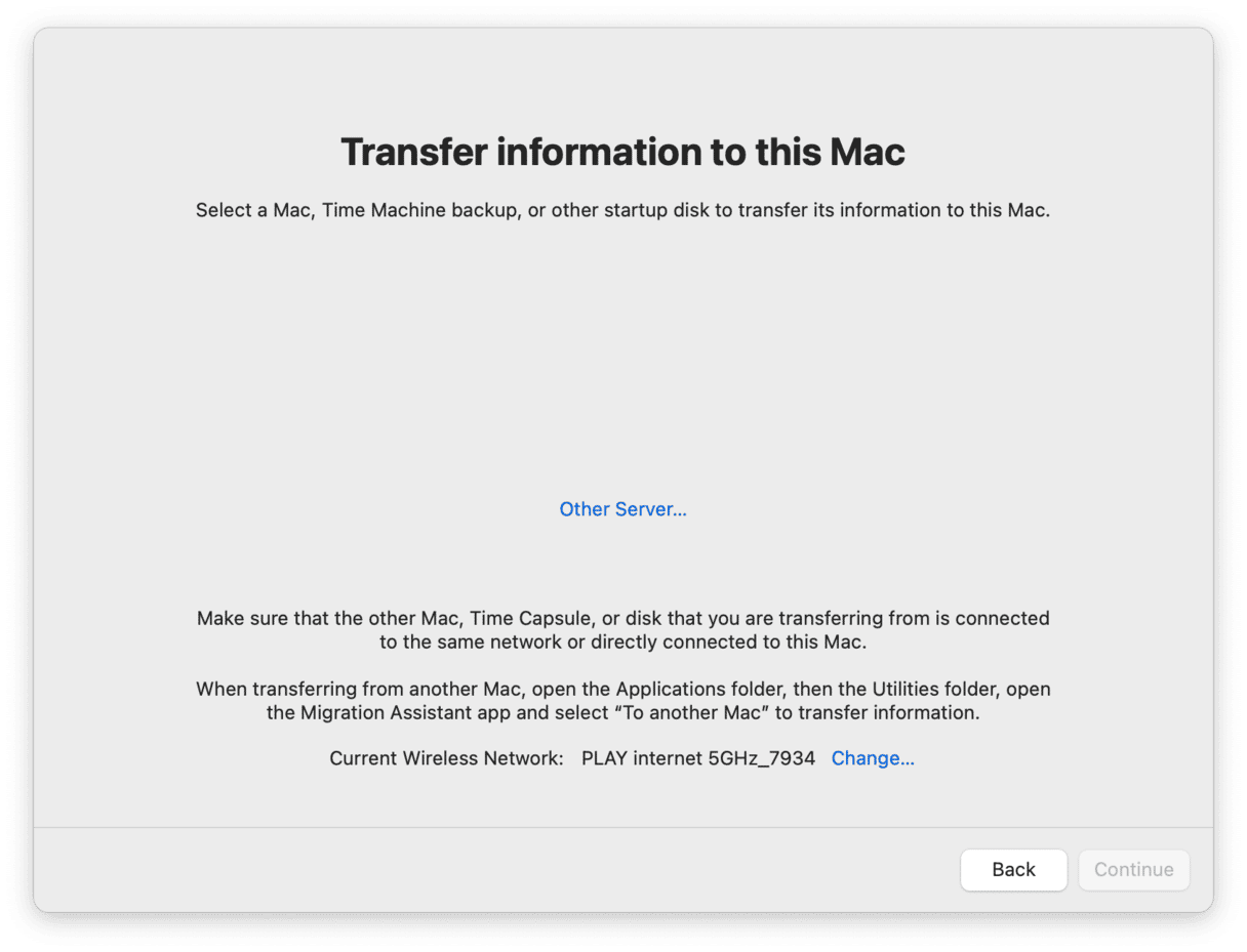 - 選擇將信息傳輸到另一台 Mac 的選項。