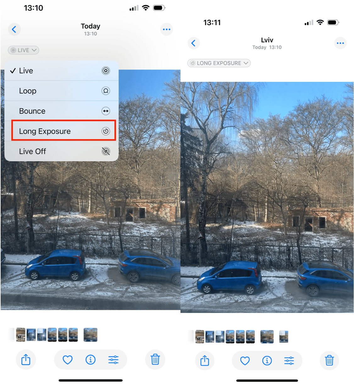 - 從下拉列表中選擇長時間曝光。點擊它即可創建您的長曝光照片。