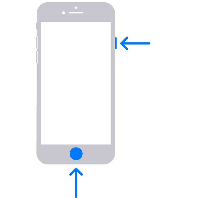 - 同時按下側面(或頂部)按鈕和主頁按鈕。