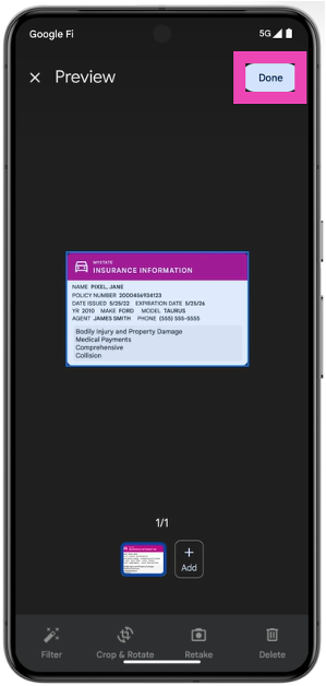 第5步:一旦文件被掃描的,Google 錢包將從中提取關鍵詳細信息。如果任何細節不正確,編輯在將它們添加到通行證之前。