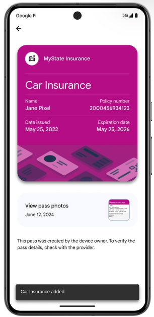 由於錢包應用程序使用手機攝像頭掃描文檔,有時提取的信息可能會出現一些錯誤。您可以先更正此信息,然後再將其添加到數字通行證中。數字通行證的顏色編碼反映了物理文檔。以下是 Google 電子錢包可轉換為數字通行證的一些文檔示例: