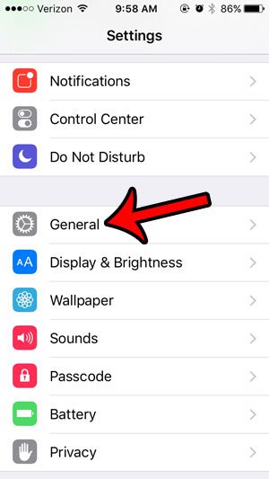 步驟 2:向下滾動並選擇一般的選項。