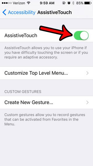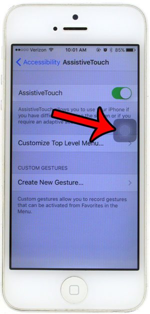 本文中的步驟將向您展示如何使用稱為 AssistiveTouch 的功能。這會在黑框中創建一個浮動圓圈,您可以點擊它來在 iPhone 上獲得其他功能。