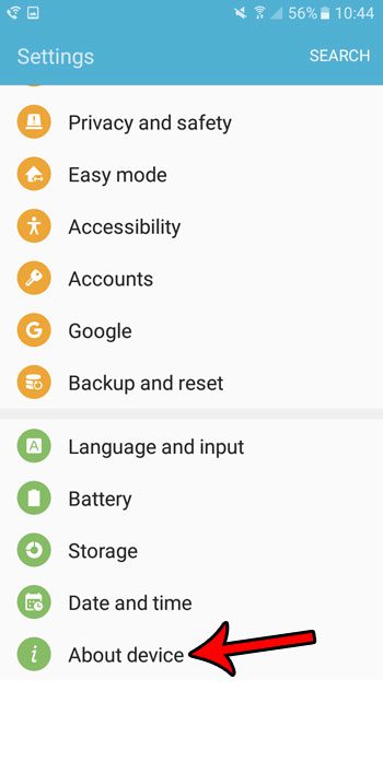 步驟 3:滾動到屏幕底部並選擇關於設備。