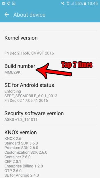 第 6 步:選擇開發者選項物品。上面是關於設備。