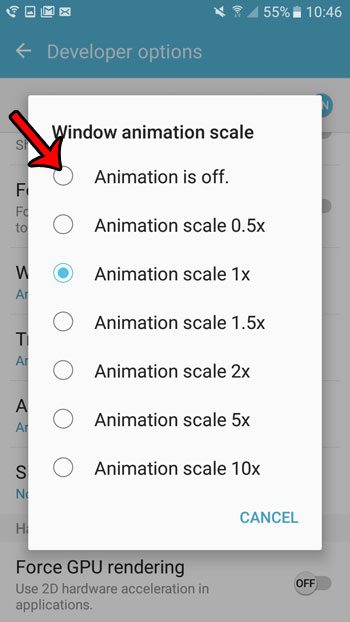 第 8 步:選擇動畫已關閉選項。