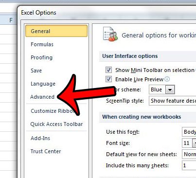 第 4 步:單擊先進的左側的選項卡Excel 選項窗戶。