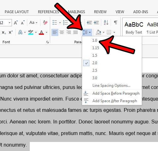 - 單擊下面的下拉菜單行距,然後選擇所需的行間距。