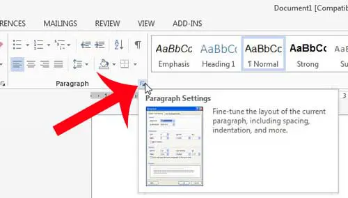 - 單擊段落設置按鈕在段落絲帶的部分。