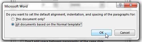 - 單擊左側的圓圈所有文檔均基於Normal模板,然後單擊好的。