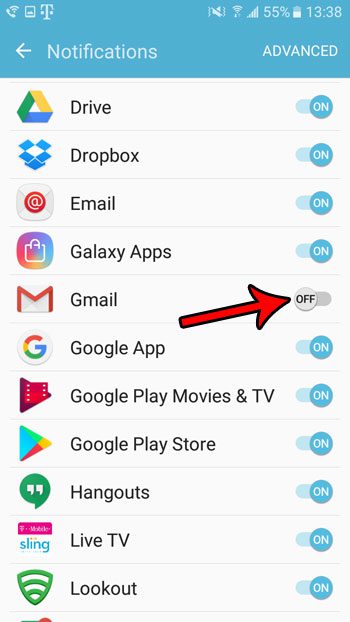 你會注意到還有一個電子郵件該屏幕上的選項。如果您在該應用程序中設置了其他電子郵件帳戶,並且您也想關閉它們的通知,請點擊該按鈕也將其禁用。