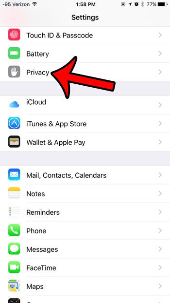 步驟 2:向下滾動,然後選擇隱私選項。