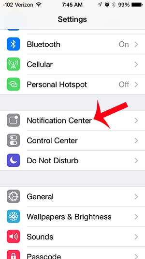 步驟 2:向下滾動並選擇通知中心。