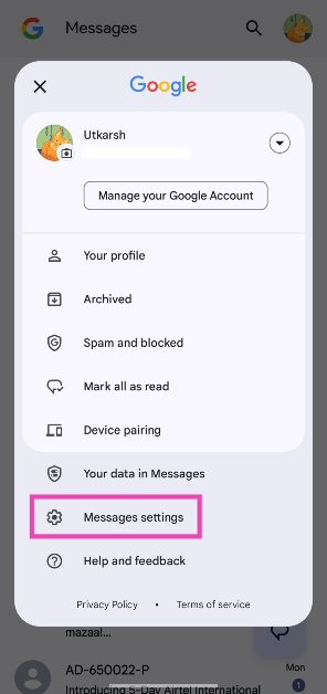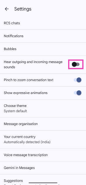 轉到 Google 消息,點擊您的個人資料照片,點擊“消息設置”,然後關閉“聽到傳出和傳入消息聲音”旁邊的切換開關。