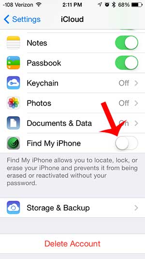 第三步:向下滾動到屏幕底部,然後觸摸右側的按鈕查找我的 iPhone將其打開。如果按鈕周圍有綠色陰影,則該功能已打開。